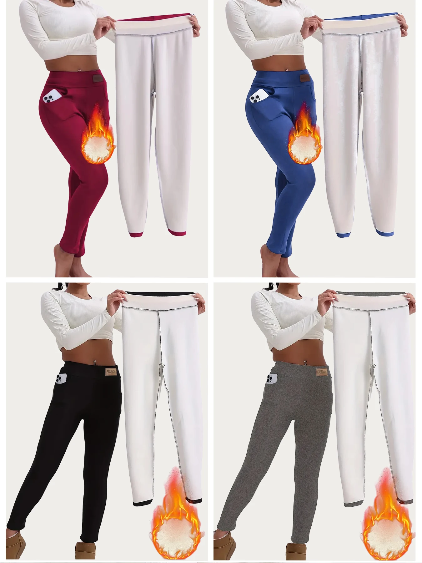 4-piece Women's Fleece Pants,Women's Solid Color High Waist Leggings, Fitness Leggings Soft Yoga Pants,Women's Leggings