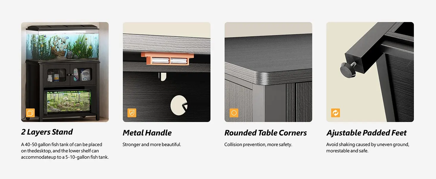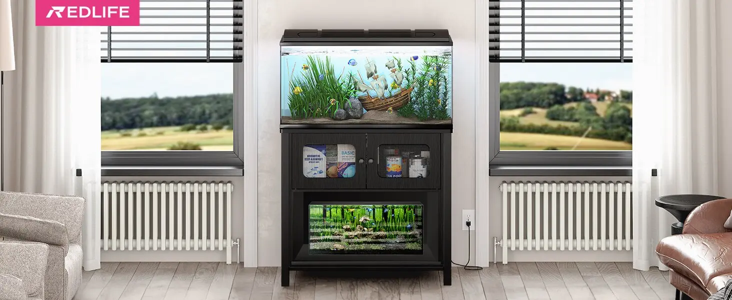 Elevate your aquarium setup with a sturdy, all-in-one stand that blends storage, power, and style.