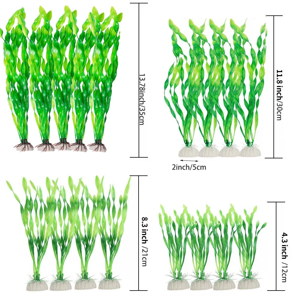 - Upright stability: soft-leaf artificial seaweed rests on a ceramic base, so each stem stands tall and remains anchored in your tank.