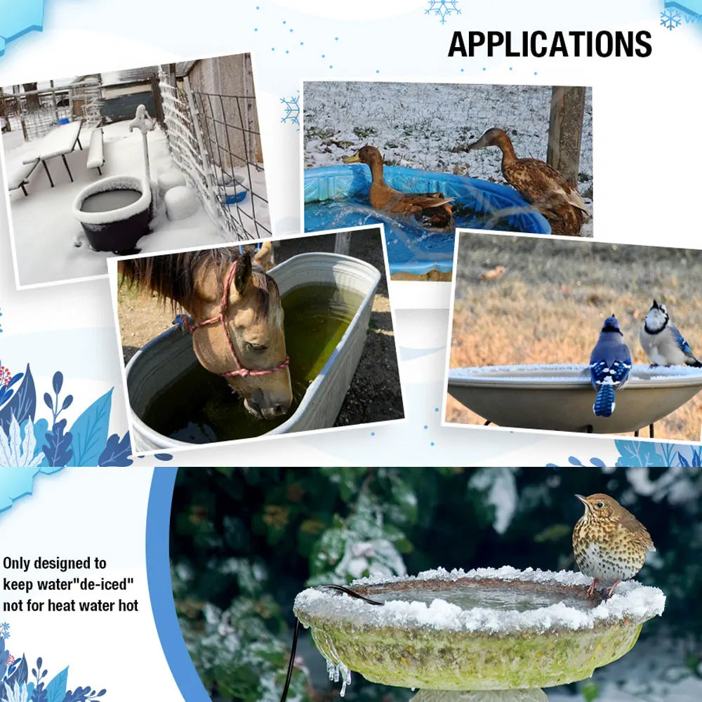 - Fits 5–50 gallon containers: Use it on poultry troughs, bird baths, rain barrels, or garden waterers to keep water flowing in winter.