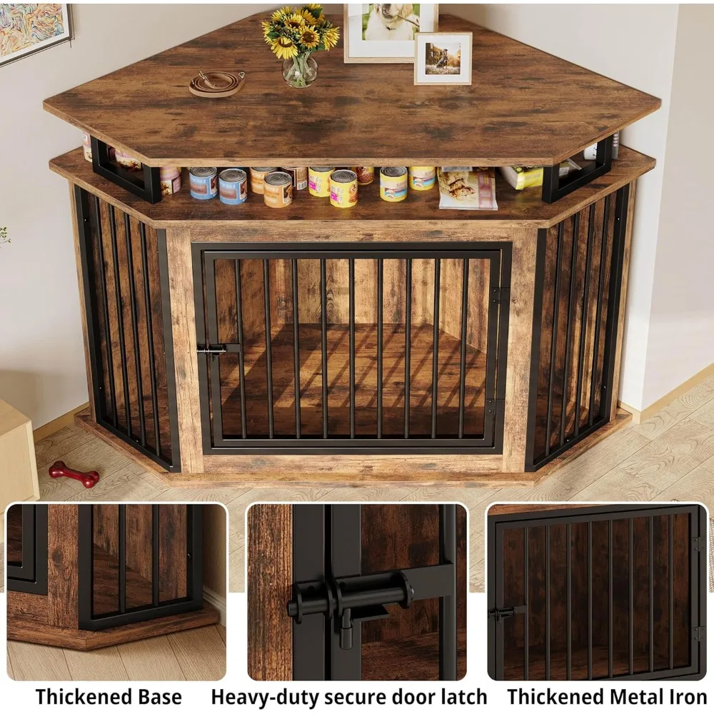Transform your space with a Corner Wooden Dog Crate that doubles as stylish furniture and practical storage.