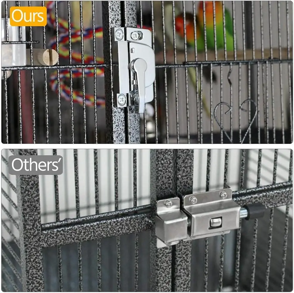 - Smart safety and cleaning features—rounded edges, secure latches, and removable trays—make care simple and safe for you and your birds, with easy access for feeding.