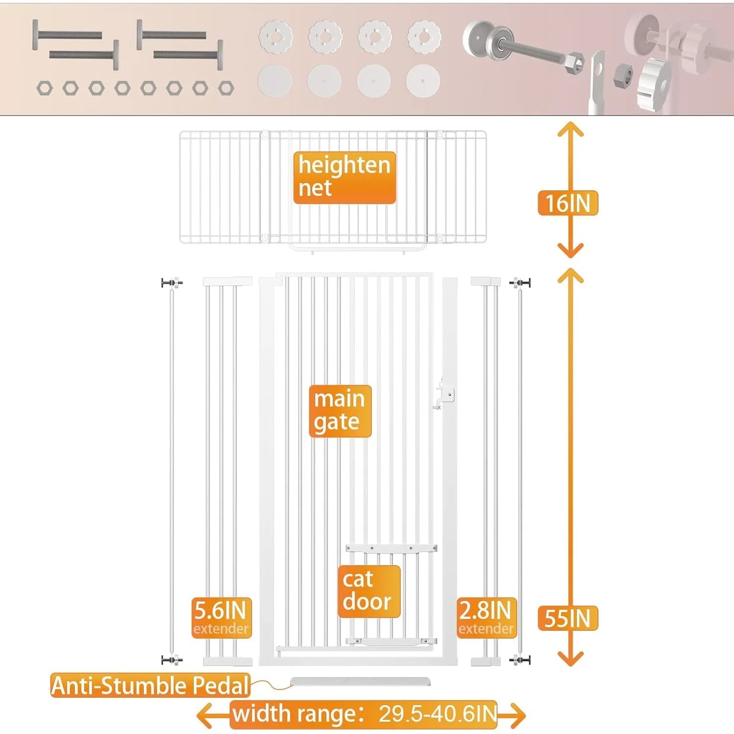 71" Extra Tall Cat Gate 29.5-40.6 Wide Pet gate for Doorway Pet Gate Cat Doors NO Drilling Prsure Mount Kit for Cats
