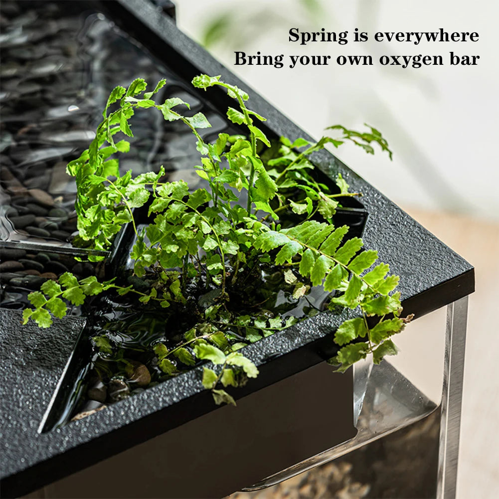 Transform your desk with a sleek acrylic aquarium featuring built-in lighting, an integrated water pump, and an ecological cycle system for effortless, engaging viewing.