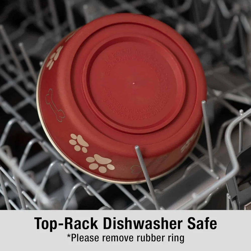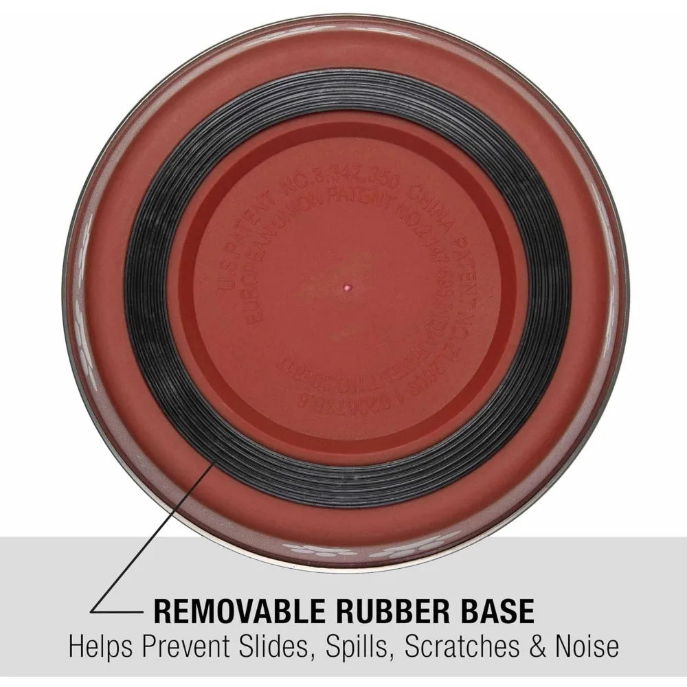 - A removable rubber base grips your floors, preventing skids, spills, and noisy clattering, so mealtimes stay calm for you and your pet.