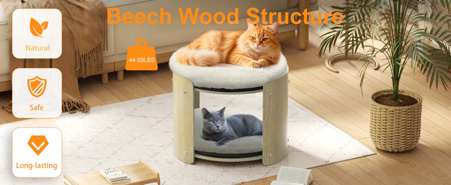 BINGOPAW 2-Layer Wood Cat Sofa Double Cat Tower Pet Bed Furniture with Removable Washable Thicker Soft Plush Mats