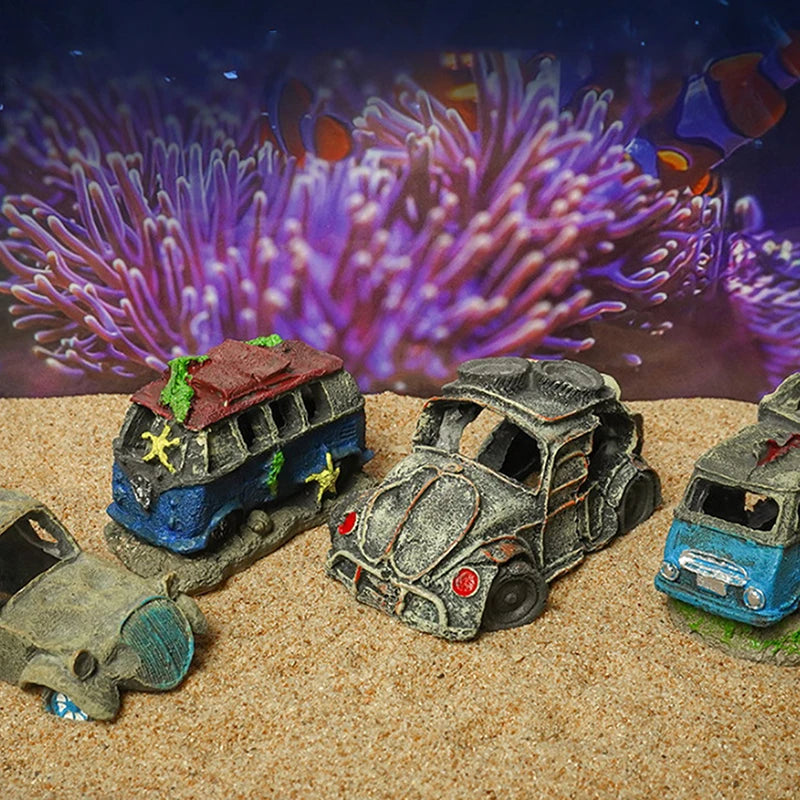 Turn your aquarium into a dramatic, story‑driven focal point with this car wreck ornament that doubles as a cozy hiding place for fish and shrimp.