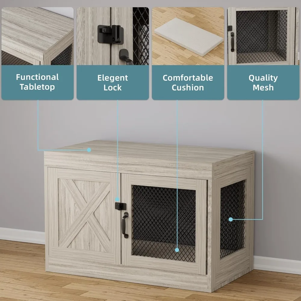 - Spacious Dimensions: With dimensions of 25.74"L x 36.66"W x 23.4"H, this dog kennel furniture is designed to comfortably accommodate a range of dog breeds. It provides ample space for your pet to stretch out and relax, making it ideal for breeds like Labrador Retrievers, Golden Retrievers, and German Shepherds, as well as dogs weighing up to 50 pounds.