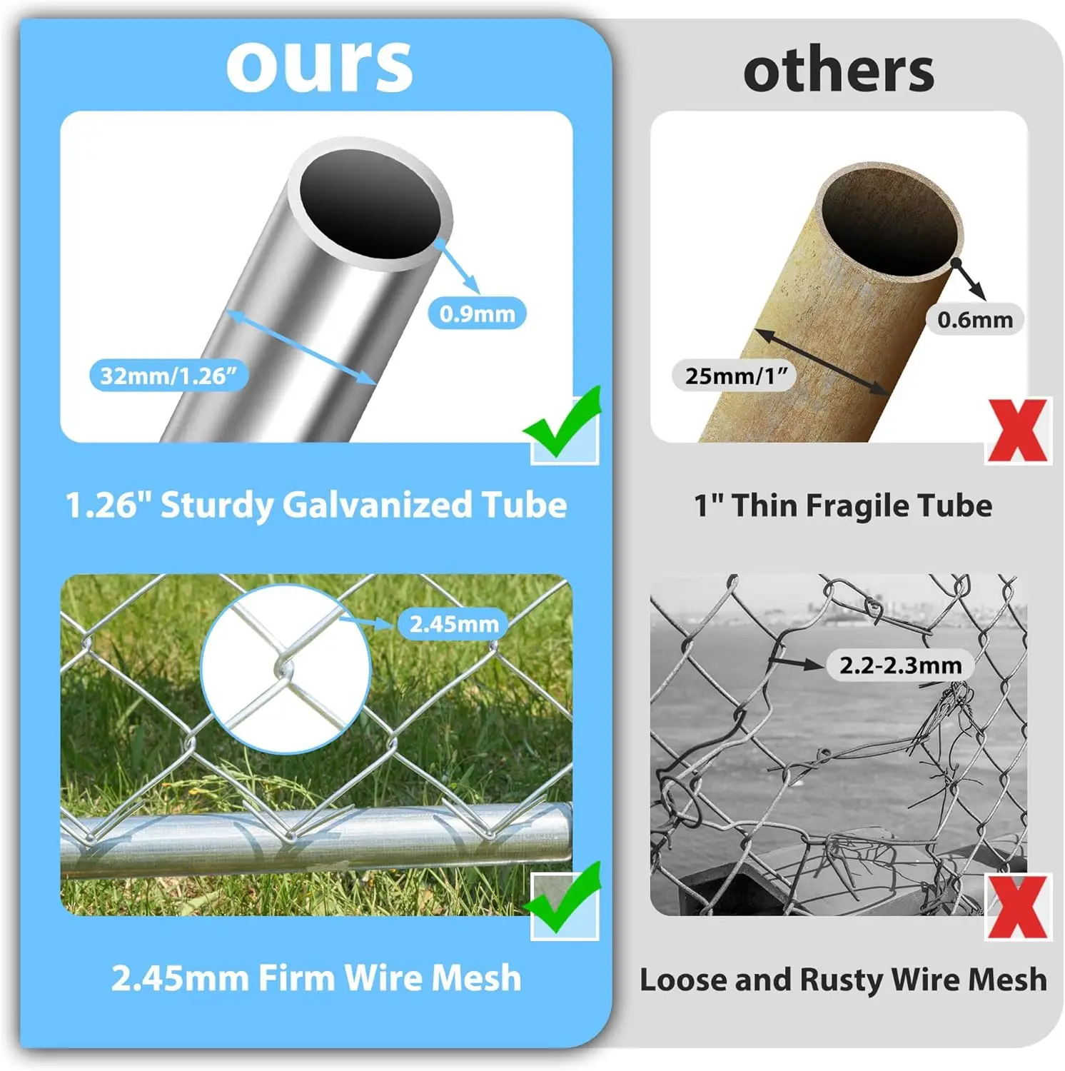 - Heavy-duty, rust-resistant frame and mesh: a 1.26-inch galvanized metal tube frame paired with 2.45 mm steel wire mesh, plus ground-inserted raised legs for stability in all outdoor conditions.