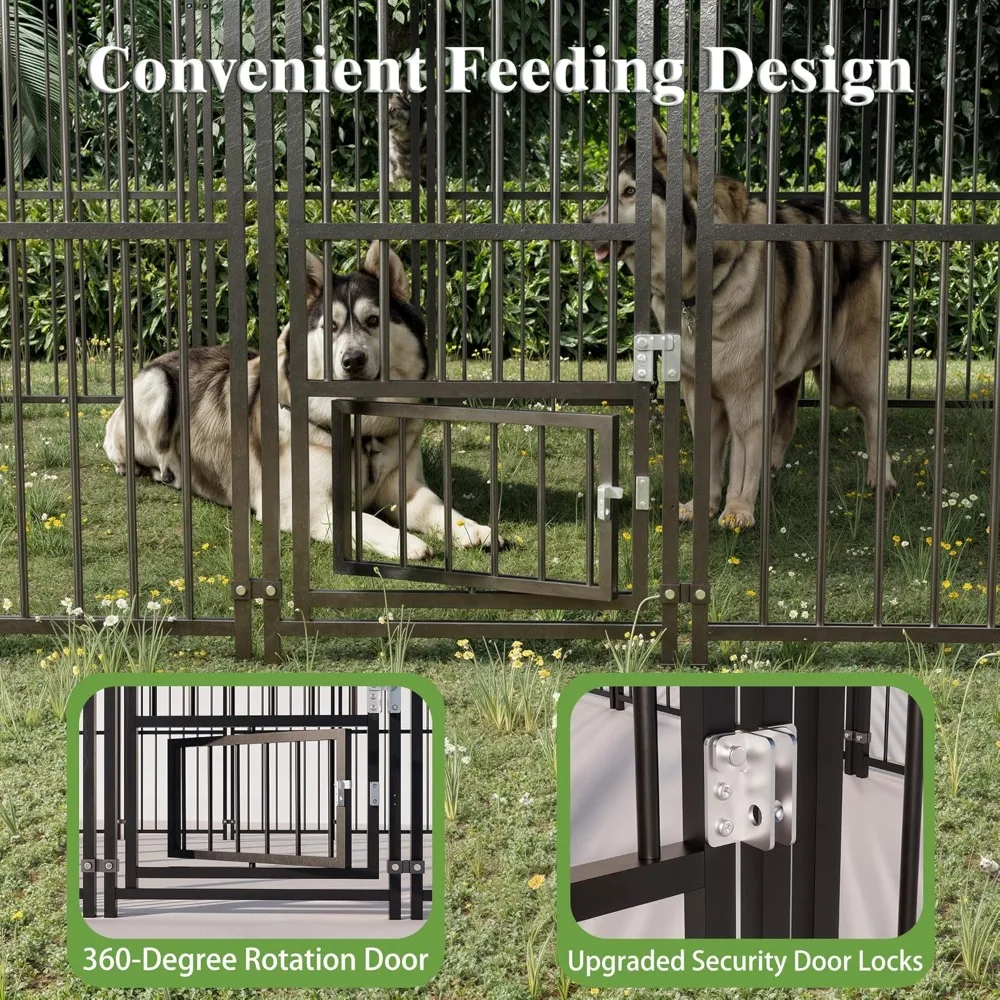 - Thoughtful Design Features: Enhanced double-lock dog enclosure door provides added security and a premium look. Convenient 360-degree swivel feeding hatch allows easy access for food and water changes