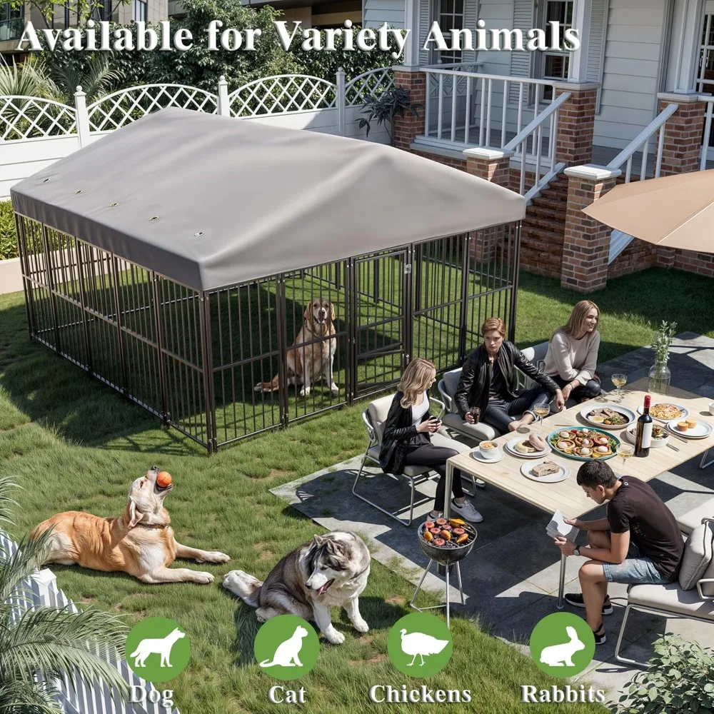 - Outside Dog Kennel with Roof: Dog kennel outdoor reinforced top structure withstands all weather conditions. Upgraded grey roof makes strap system for maximum durability, offering reliable sun and rain protection