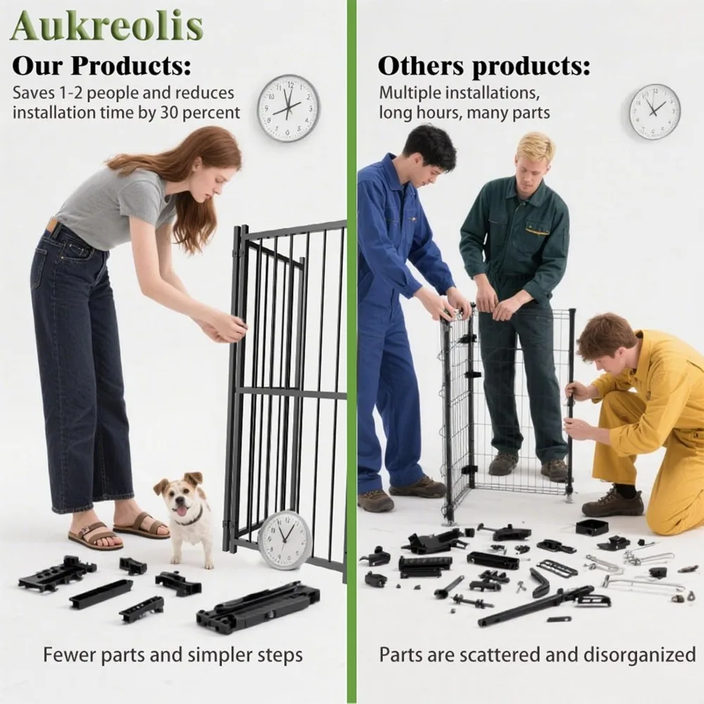 - Simple and Quick Assembly: Dog crate fence panels connect easily using included fittings and minimal screws. Saves more time and steps and makes the installation easier.Ships in 2 boxes, may arrive separately