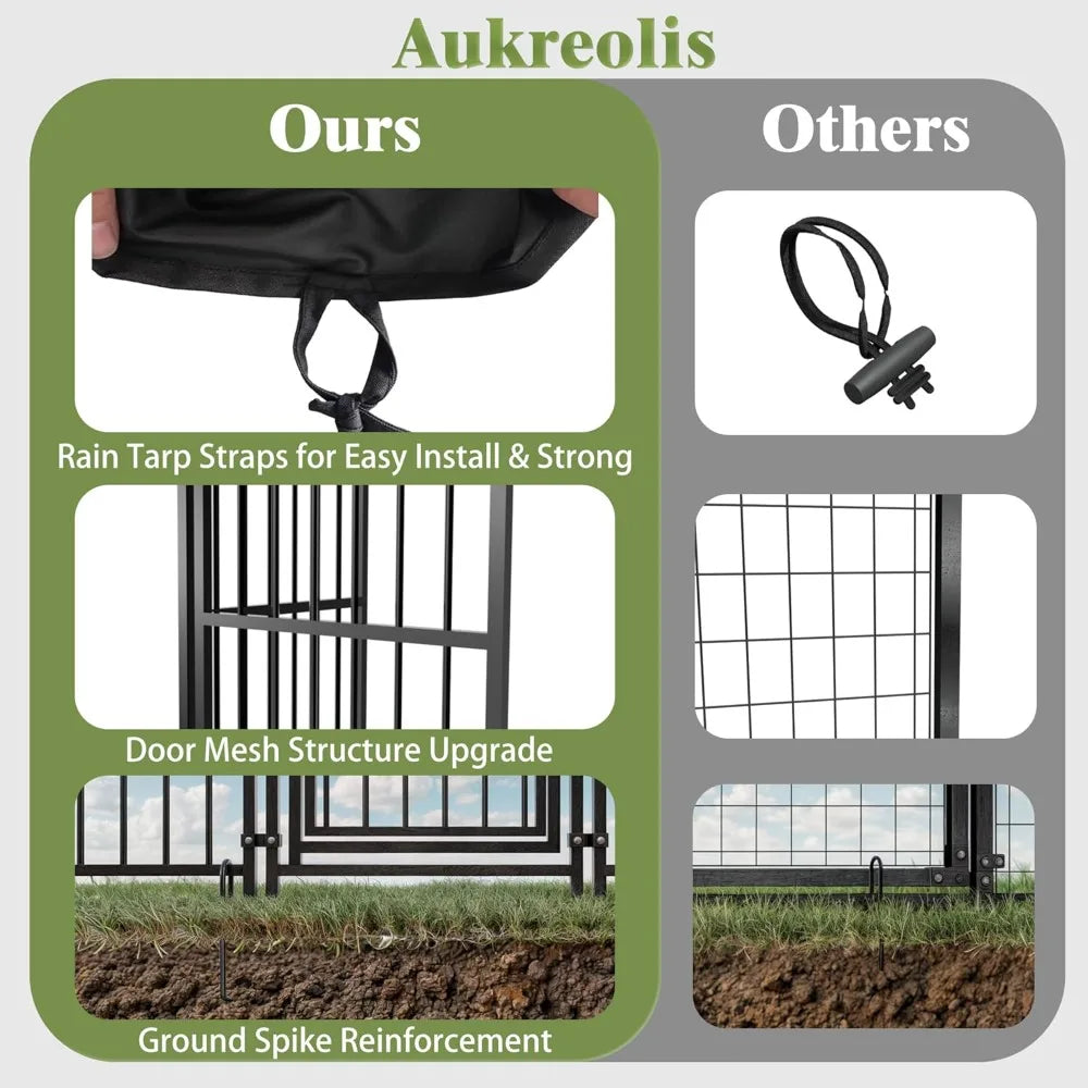 - Upgraded Sturdy Construction: Outdoor dog kennel uses welded galvanized iron pipe instead of the traditional rolled wire door mesh for superior strength and chew-resistance. With ground stakes to securely anchor the kennel
