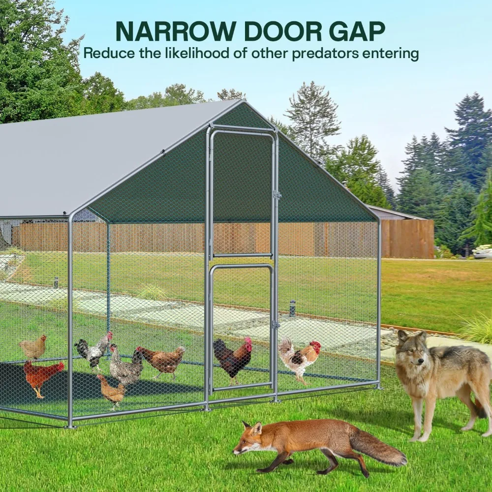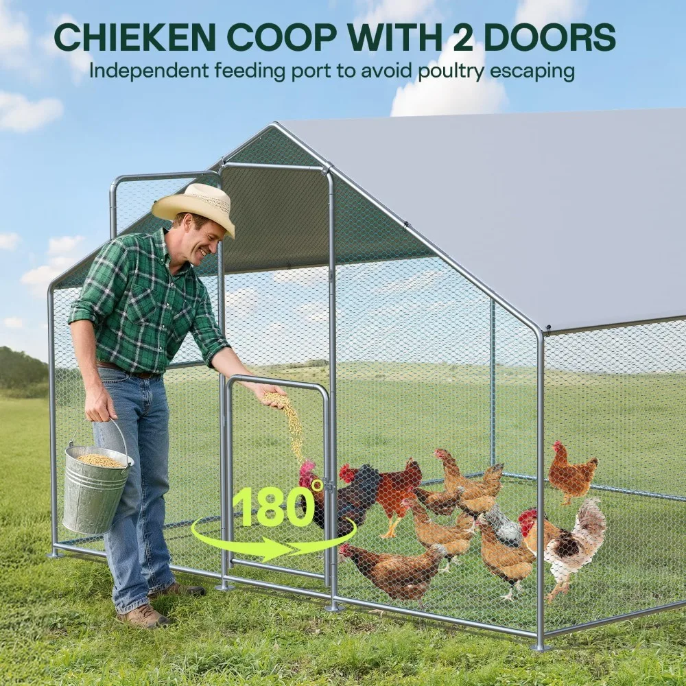 Large Metal Chicken Coop with Run, Walkin Poultry Cage for 30 Chickens with Full Coverage Roof, Waterproof & Anti-UV Cover