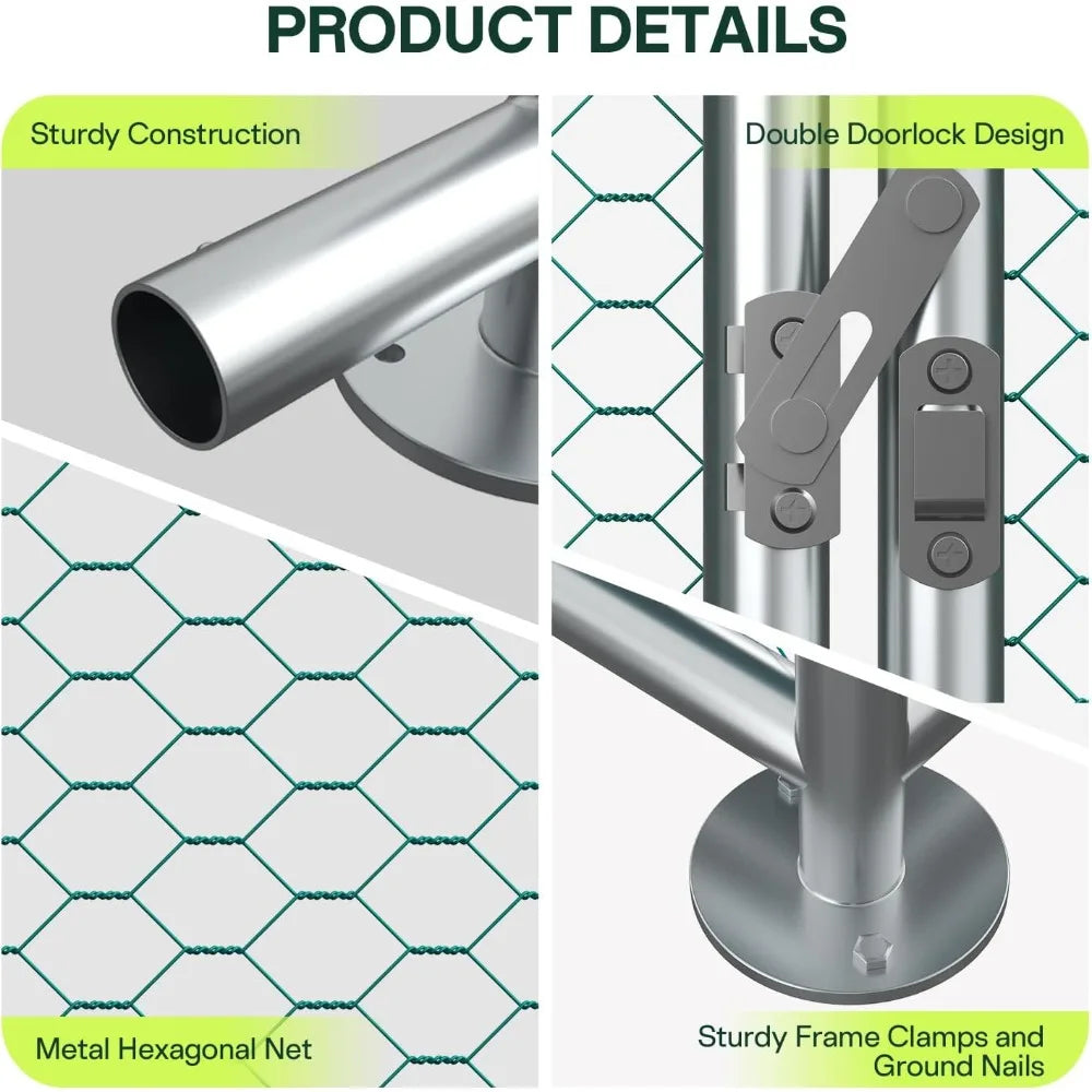 - Ventilated, Predator‑Safe Interior: PVC‑coated hexagonal wire mesh blocks small predators while maintaining airflow; interior space accommodates 6–10 birds, with dimensions 79\"L x 117\"W x 79\"H.