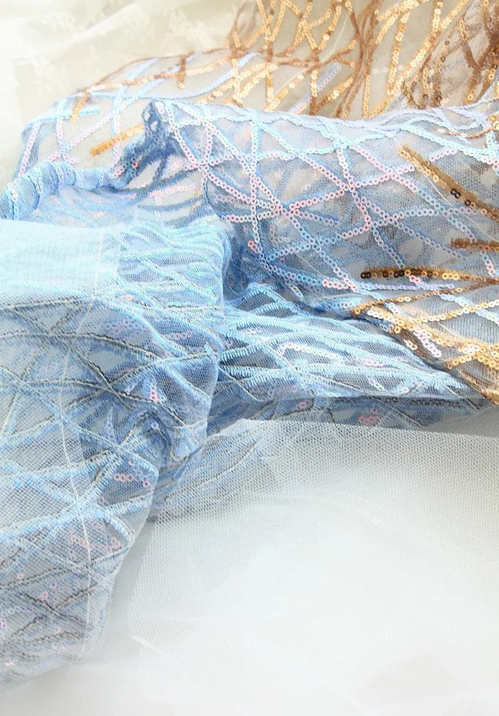 Luxury Handmade Dog Wedding Dress Blue Gold Sequins Embroidered Gradient Color Gown with Shiny Trimmings Pet Skirt