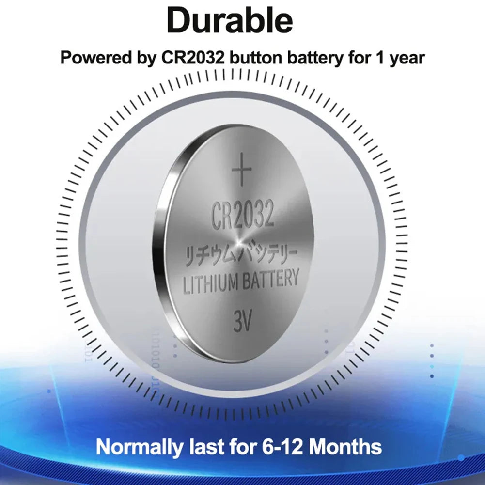 - Long Battery Life: Powered by a CR2032 coin cell battery (not included) for 6–12 months of operation between swaps.