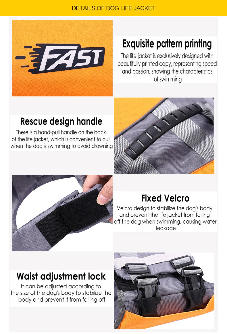 Pet Swimming Life Jacket Safety Vest for Dogs Swim Fashion Adjustable Reflective in Pool or Surfing Drifting Dog Life Vest
