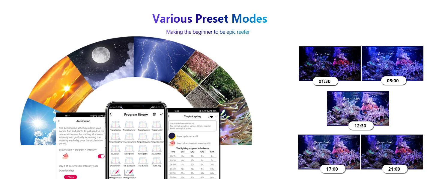 - Full-spectrum, 4-channel output — Four channels deliver essential lighting for plant growth, coloration, and coral health with vivid accuracy.