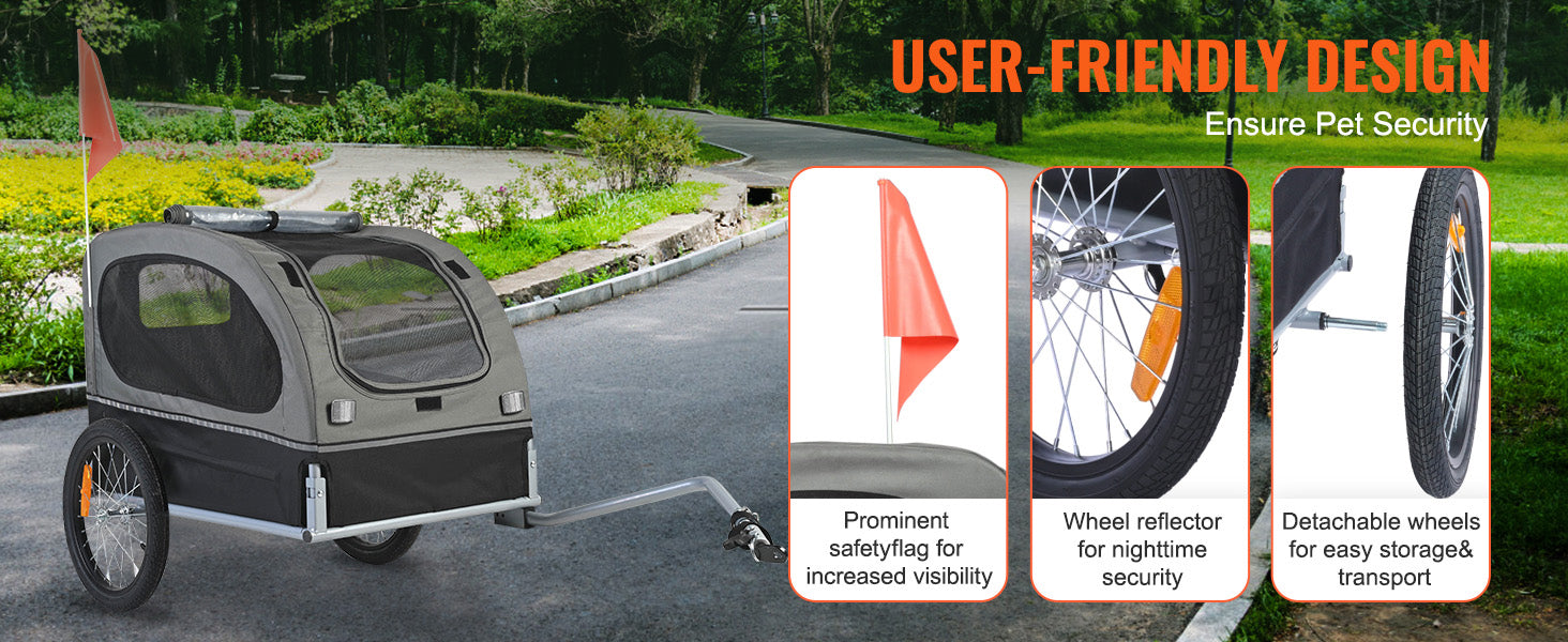 Safety-Oriented Design:Equipped with a high-visibility flag and four reflectors, this dog bike carrier stands out on the road, ensuring safety even in low-light conditions.