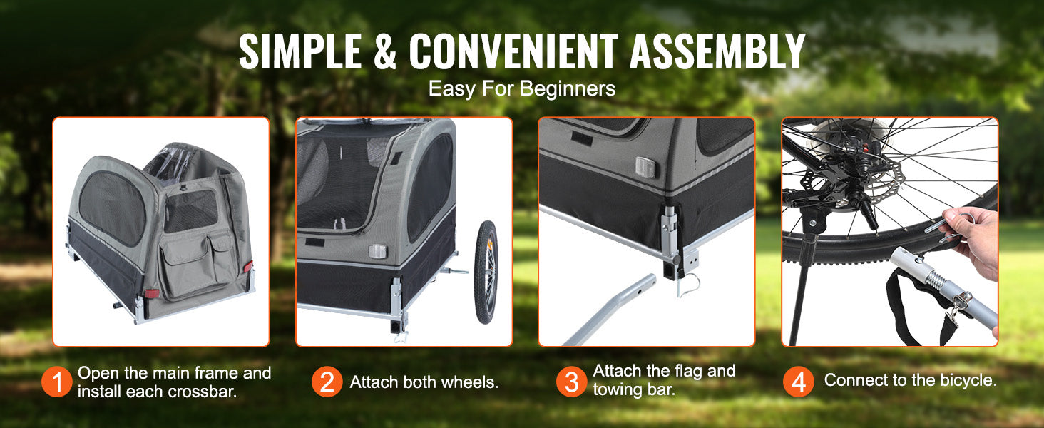 Effortless Setup:Assembling our bike dog carrier is simple and requires no special tools or skills. It's designed for easy setup, allowing even beginners to get it ready for adventure quickly.