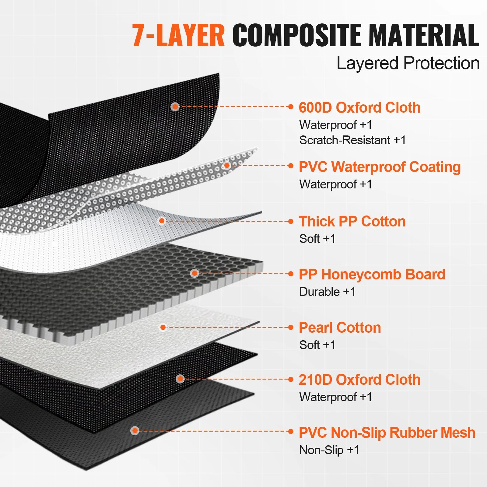 - Built with a heavy-duty 7-layer design and a honeycomb bottom to support up to 350 lbs while protecting seats from spills and claws.