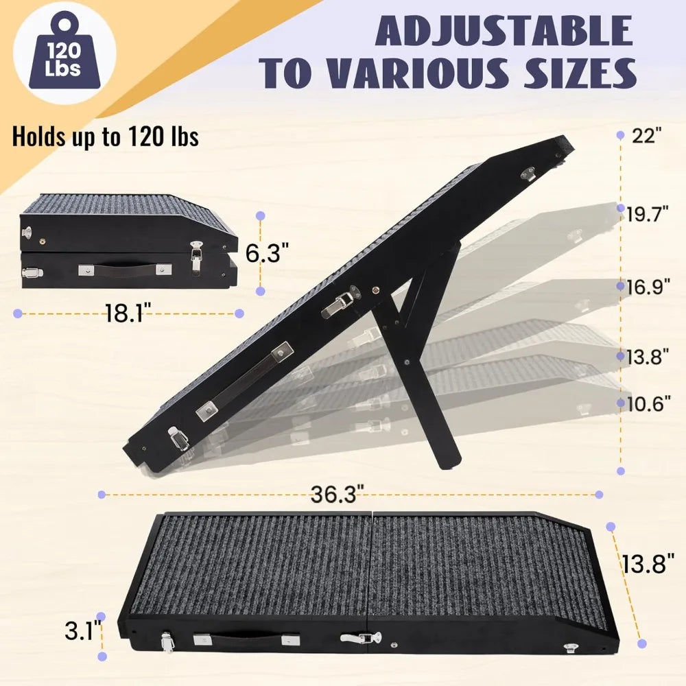 Wooden Dog Ramp for Couch High Bed, Non Slip Pet Ramps for Small Dogs and Cat with 5 Adjustable Height from 10.6'' to 22'', Port